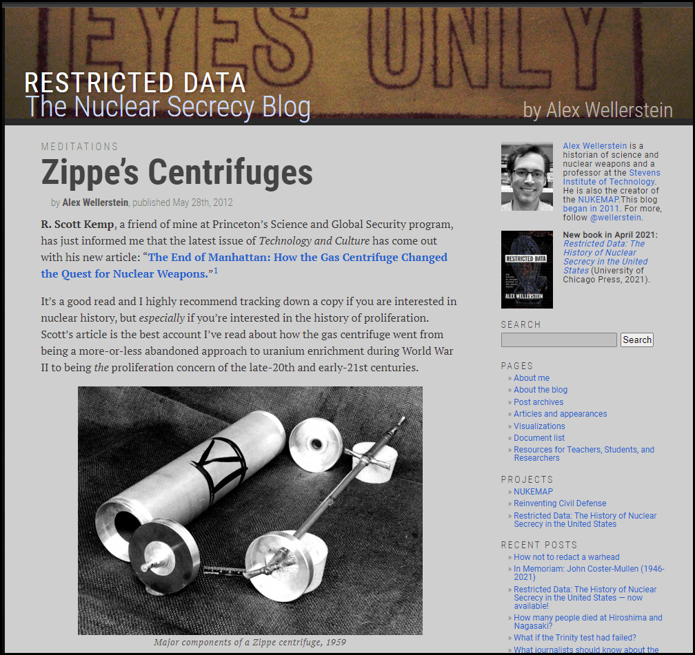 Why not just pick up the phone and find out from the father of the modern uranium centrifuge himself?