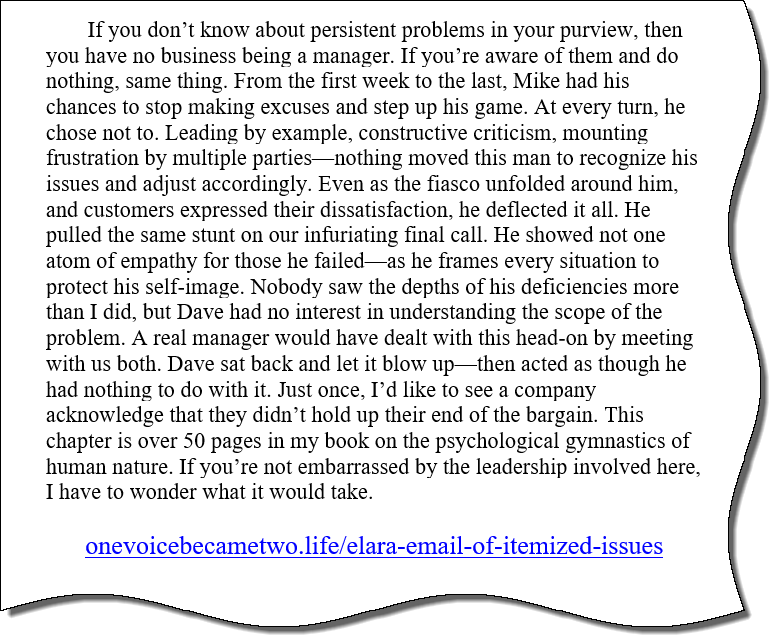 I still had more to say — which led to the Over the Moon letter below, and the 6-part chronological case (with Elara Email of Itemized Issues as the preface).