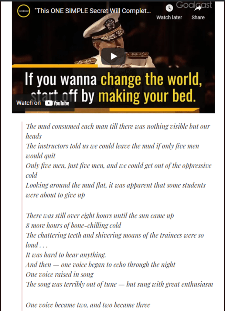 As uplifting as Admiral McRaven’s speech is — mine comes with a twist: