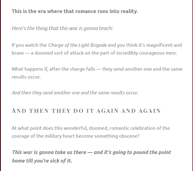 He doesn’t write with that tribalist sense. He’s trying to be purely objective and there’s nothing in him of — here’s what we down here think. Here’s what we’ve been through. It’s not seasoned with any of that — he’s just trying to have a white lab coat on and look at the facts.