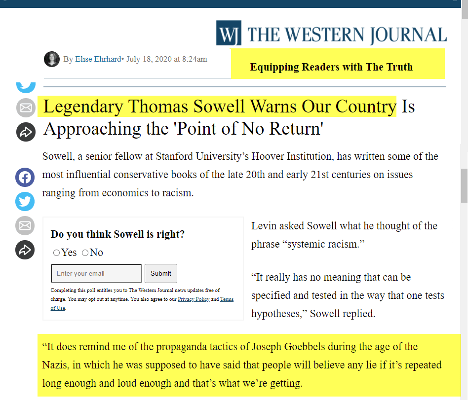 If you won’t set the record straight on Sowell, you’re protecting a lie no matter how you slice it.