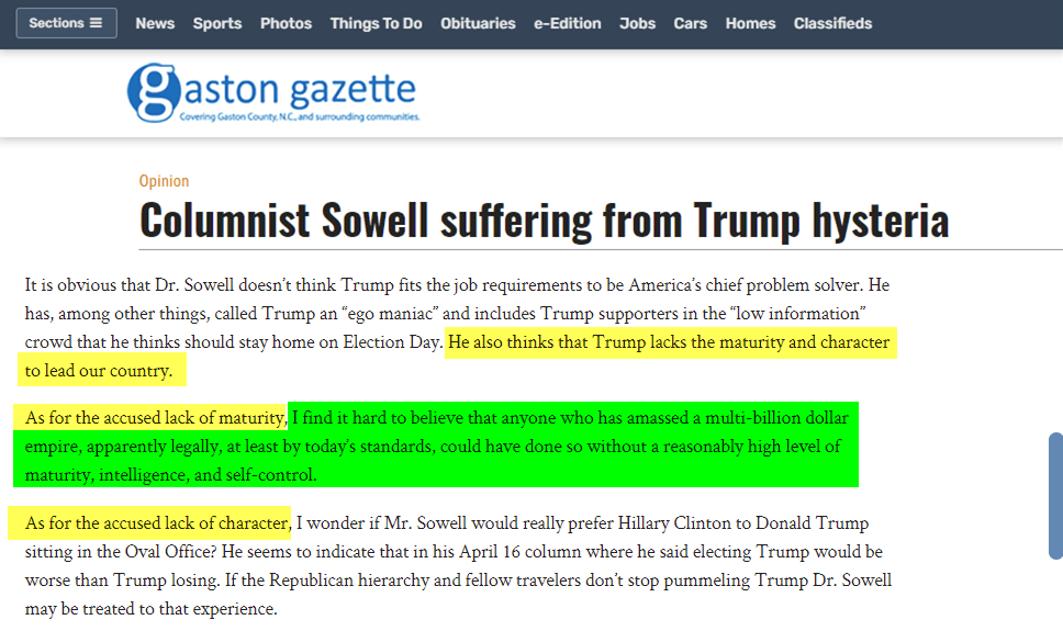 Your whole world revolves around discernment — and then you turn around and be wildly undiscerning on Sowell. And all you fans follow suit . . .