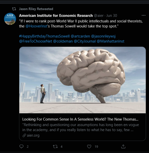 Sowell did no such thing — but has credibility on this world-altering topic anyway.