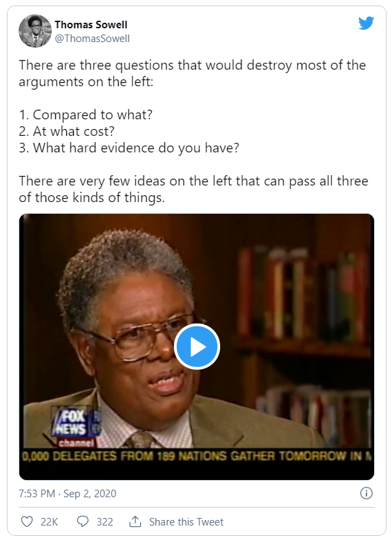 That the reaction is not to think it through, not to question, not to assemble facts, not to make arguments — but instead to wave banners and spout slogans such that you could hardly distinguish what they were doing from a manifesto that would come out of Black Lives Matter