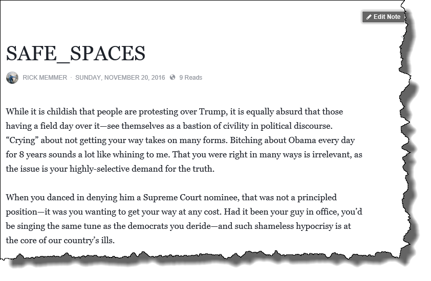 There’s a page called Safe-Space Central as well — and its origin is in what I wrote soon after Trump was elected: