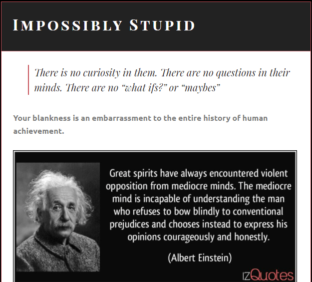 Their behavior is Impossibly Stupid — squandering their intelligence to entertain themselves.