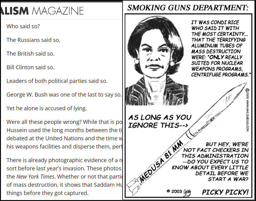 What part of “WMD,” “biggest and most costly lie in modern history,” and “most world-altering topic of our time” — do you not understand?