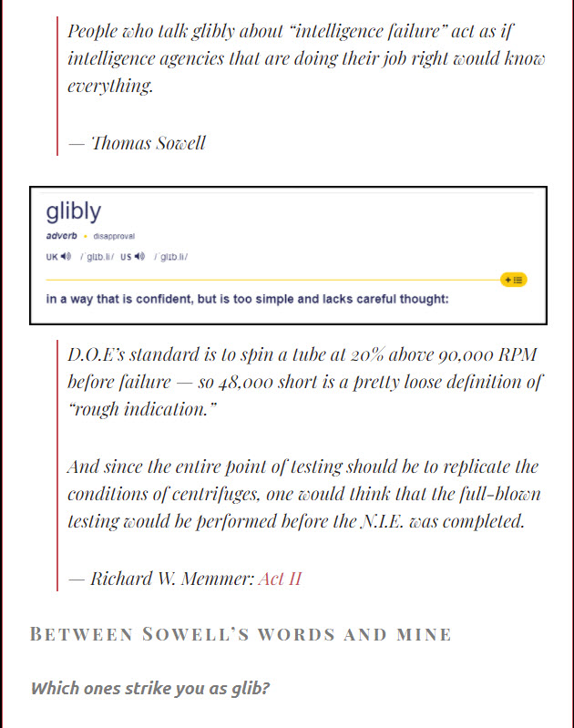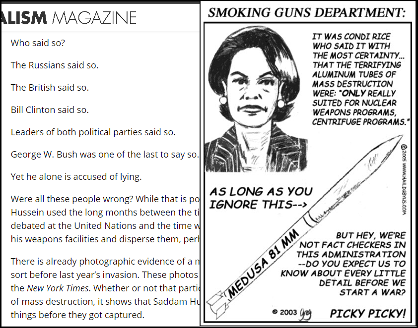 I am taking the opposite approach with my isolated look at the aluminum tubes — and insight into that intelligence scheme is a roadmap to the rest. But the only way to truly understand the story is to juxtapose the relationships of the relevant players involved.