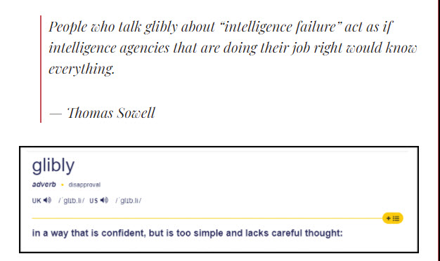 People who talk glibly about “intelligence failure” act as if intelligence agencies that are doing their job right would know everything.