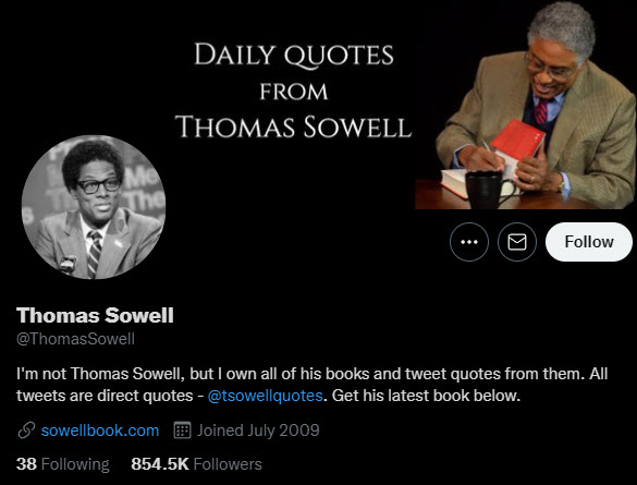 “Said so and so” doesn’t strike me as Sowell’s standards. This guy seems to know something about him that I don’t — maybe I should find out what that is.