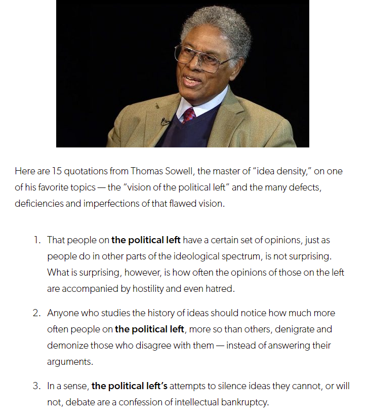 Sowell and his supporters would say the same, and yet they refuse to see that he and his party pull the same stunts in pursuit of “greater good.” Pay no mind to the damage you’ve done with your partisan passions.