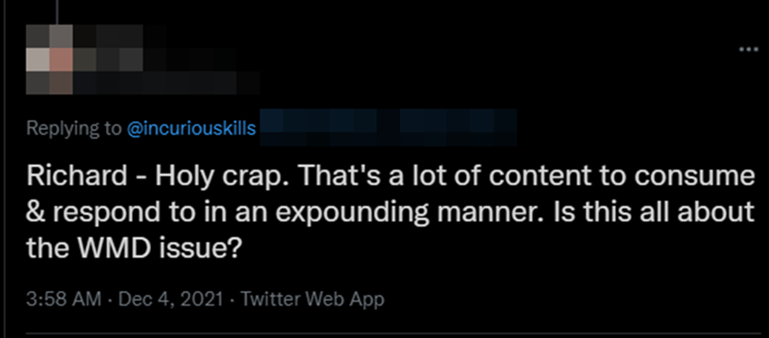 Contrast his loose language of “various nations‘ intelligence agencies” (and anything he said on the subject) — with the specificity of mine . . .