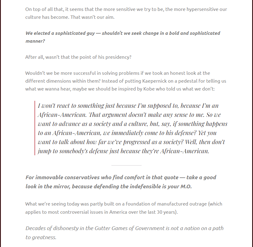 I don’t do one-dimensional views — just like I Don’t Do Slogans.