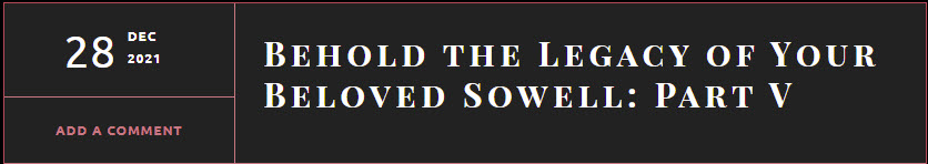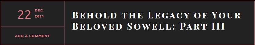 And of all people, Thomas Sowell is key to it — he just needs to abide by the very principles he preaches. This man needs to be called to account for his misdeeds.