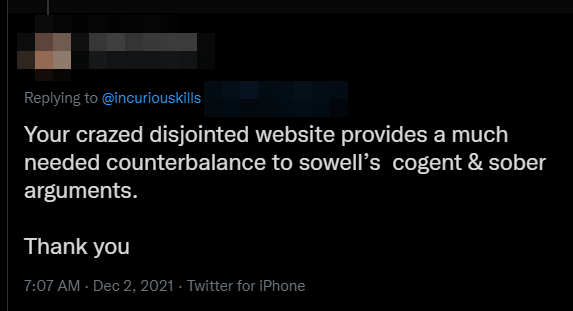 And don’t you find it suspicious that someone of Sowell’s caliber is gonna come right out of the gate with something so weak as: