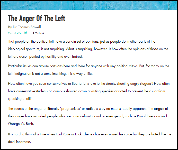 Showing Sowell’s piece below has nothing to do with defending the Left. This is about his record being wildly out of sync with reality on the Right.