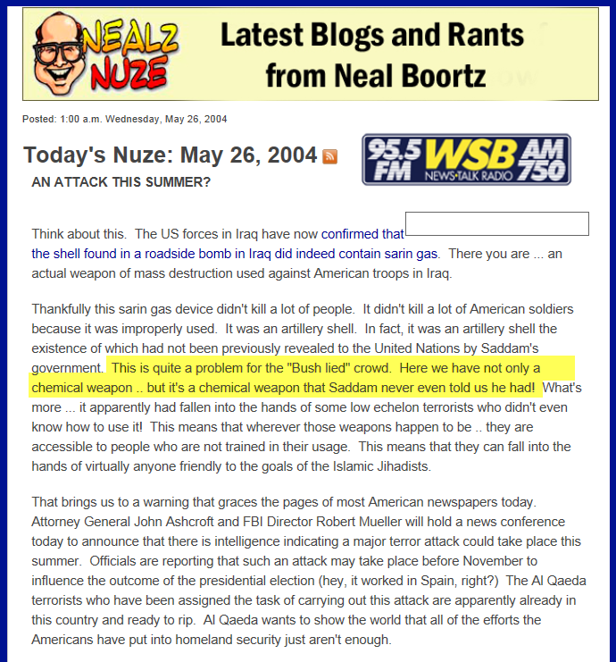 By the way, the Senate Report on Pre-war Intelligence on Iraq was released on July 9, 2004 — one day before Sowell’s Weapons of Crass Obstruction.