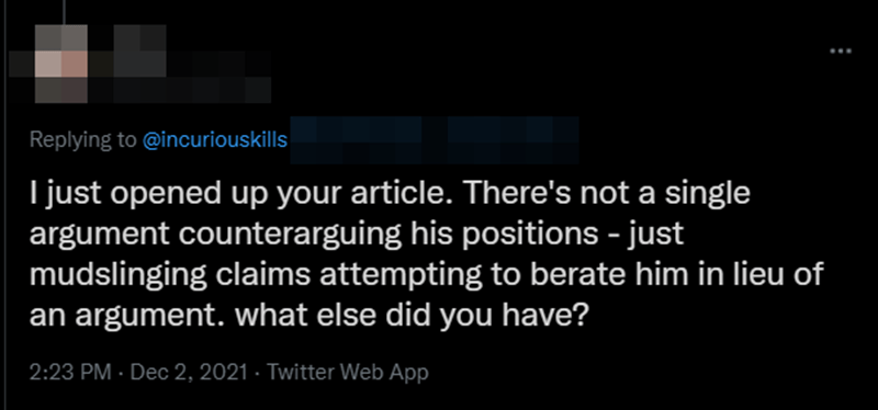 It astounds me that even sharing something in hopes of a human connection — that maybe having something in common could pierce your force field of fallacy: