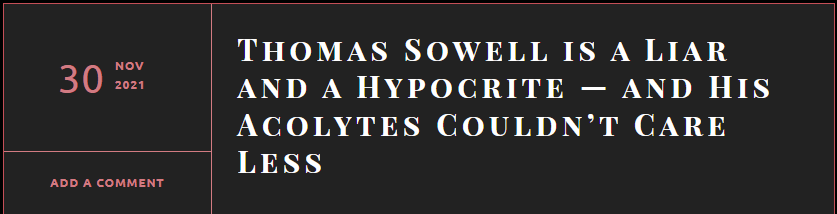 Why take on Thomas Sowell when there are far more prominent figures who manufacted this fraud? I already did that — and apologists issued nothing but insults & excuses for that too.