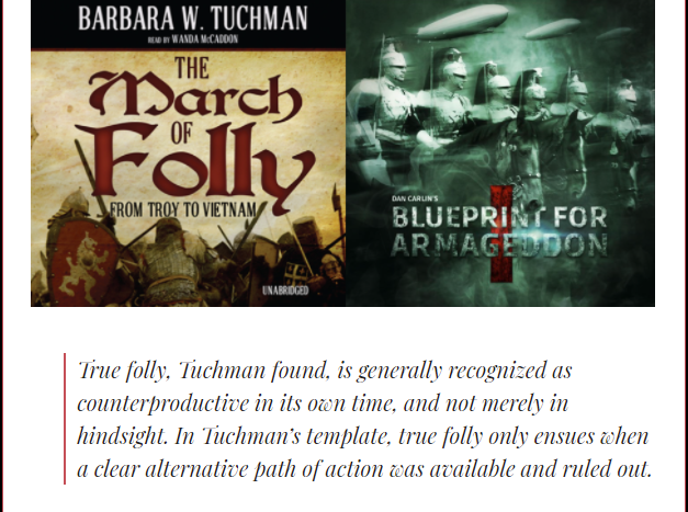 The Right delights in ridiculing the Left for burning buildings to further the cause. Yet they went batshit crazy after 9/11: Setting the world ablaze — and browbeating anybody out of line in their March of Folly