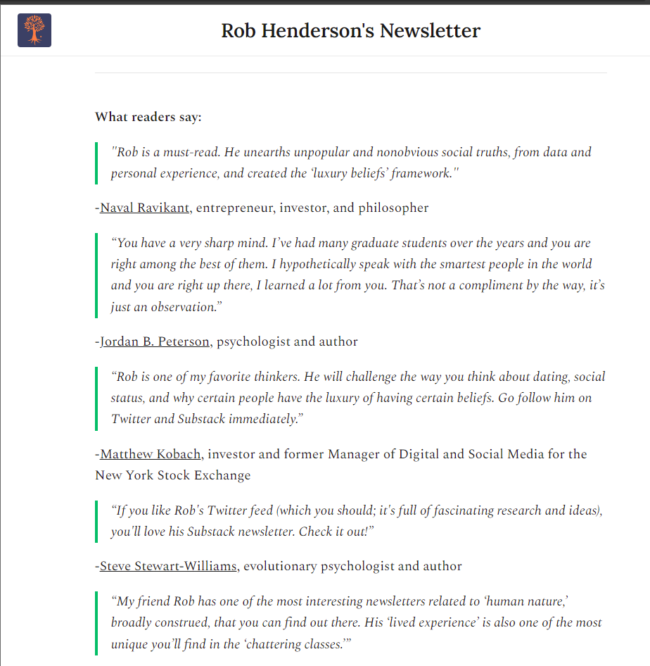 Glenn Loury once called my writing “brilliant” and was “blown away” by my site and signed up.