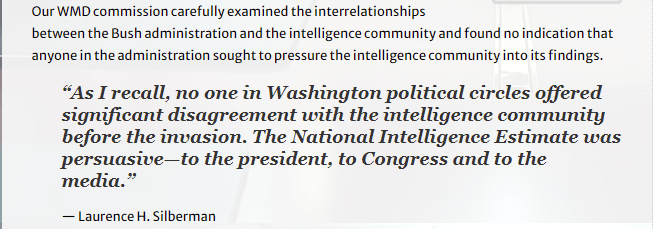 The only way someone can maintain with a straight face that George W. Bush lied into the Iraq war is to immerse himself in ignorance, refuse to listen to clear, obvious facts and/or retain a pathological hatred of George W. Bush because it provides psychological satisfaction.