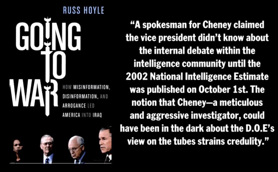 Sowell’s 2-minute read is 752 words — not one of which addresses the tubes that took us to war. Compare his piece to my 7-part series that’s 2 hours and 40 minutes (with props on display, no less).