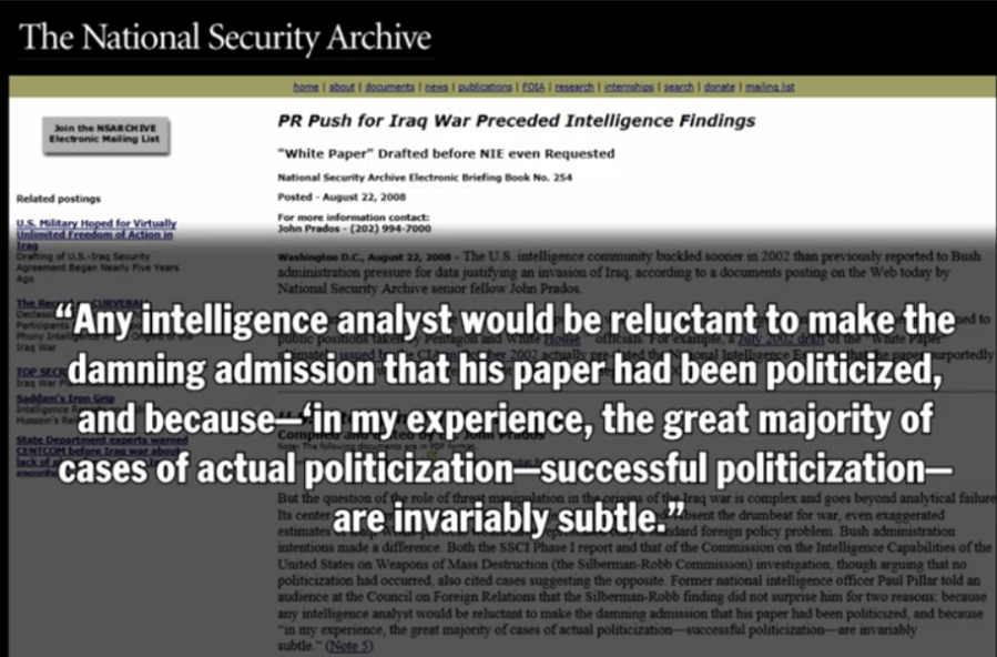 And you’re gonna sit there and tell me that “no politicization of the intelligence” took place?