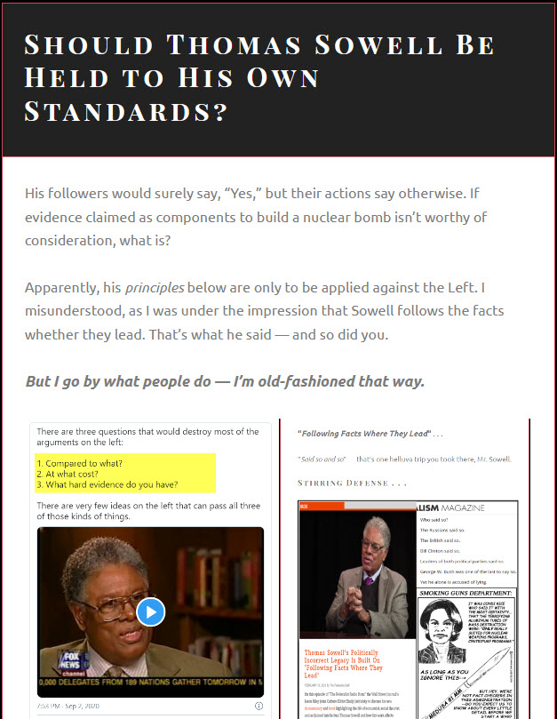 He and his flock incessantly complain about the media — and they don’t make policy. But the second I scrutinize Sowell — suddenly you have new standards.