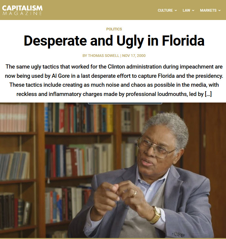 Sowell may be right about what he wrote about Florida — I’d have to thoroughly research the issue before I would weigh in on it. And even then, that subject matter’s so murky that it would be hard to say with certainty.