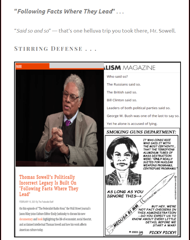 So you found one small crack in Sowell’s character where he defended Iraq having WMD, does that hurt his credibility?