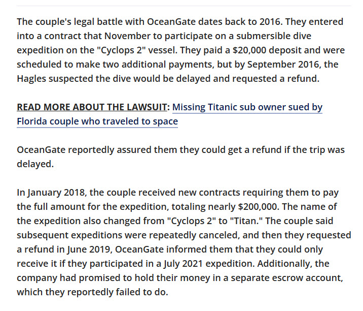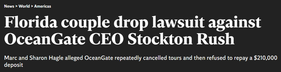 But imagine if it had explicitly stated that the window was rated at 1,300 meters (2,500 short of Titanic)? Knowing that, you’d have to be out of your mind to go down in that thing.