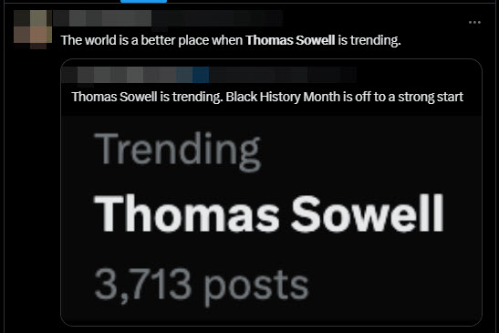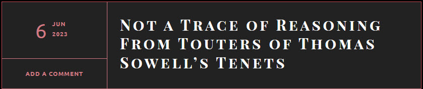 That behavior’s rampant across-the-board in America, but Sowell’s crowd takes the cake. His cult-like following is unlike anything I’ve ever seen. As I’ve been in the trenches battling hermetically sealed minds for decades, that’s saying something.