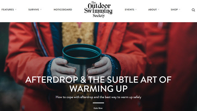 Afterdrop is the phenomenon of your body temperature continuing to drop even after you get out of cold water and into a warmer environment – so that you feel colder 10 or 40 minutes after you exit than you did in the water.