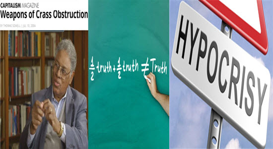 The faithful tap dance around reality — oily evading anything that requires them to hold Sowell to his own standards.