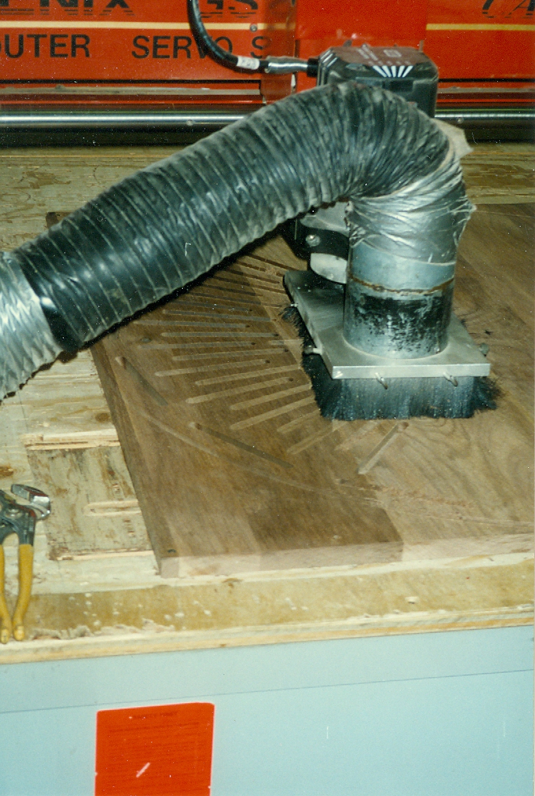 That particle-board piece on the wall was cut on a Flow water jet just like the one in the picture. It was a sample run for the CD wheel I invented.