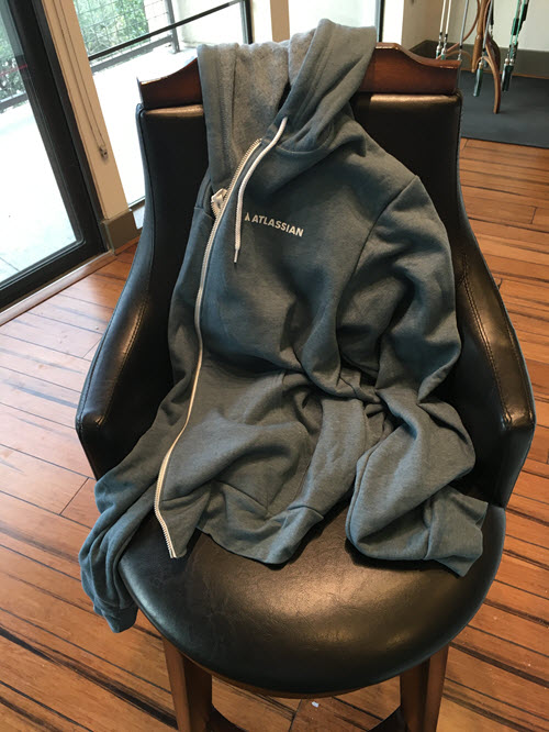 For my perseverance and passion, the Jira support-tech stunned me with a $20 coupon for their store. This sweatshirt was $40, so I got a helluva deal at half off.
